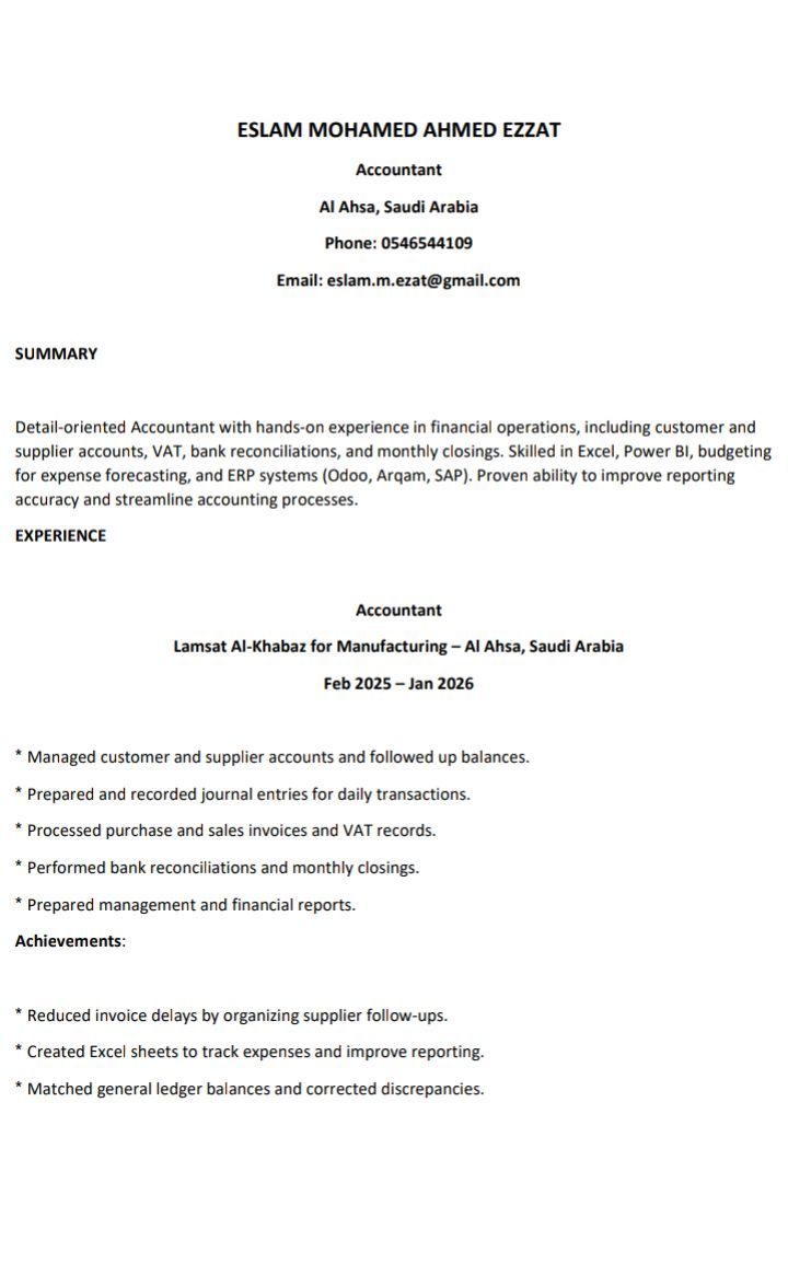 محاسب مالي ابحث عن وظيفة خبرة في التعامل مع البرامج المحاسبية واعداد ومراجعة القيود اليومية والتعامل مع هيئة الضريبة والدخل والتقفيلات الشهرية وتصدير التقارير المالية ومتابعة ووضع خطط التدفقات النقدية ومتابعة حسابات العملاء والموردين
