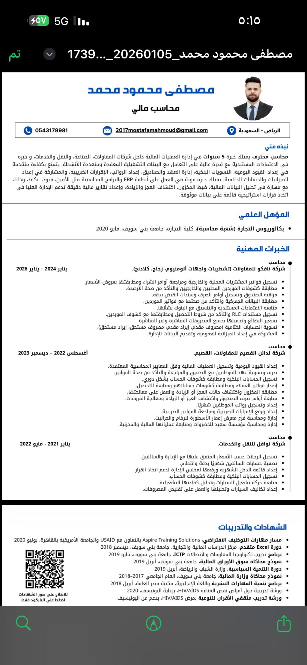 ابحث عن فرص عمل وظيفة محاسب الخبرات المهنة 1 - خبرة في الاعتمادات المستندية 2 - خبرة في التخليص الجمرك - 3 خبرة في مجال المقاولات ألومينيوم وتشطيب الواجهات 4 - خبرة في مجال الخدمات اللوجستيه شركات التقل 5 - خبرة في التعامل مع الموردين المحلي والخارجي أكثر من سنتين 6 - خبرة في اعداد رواتب الموظفين 7 - خبرة في الاقرار الضريبي 8 - خبرة في تسوية عهد الموظفيه 9 خبرة في مطابقه كشوفات البنوك والعملاء