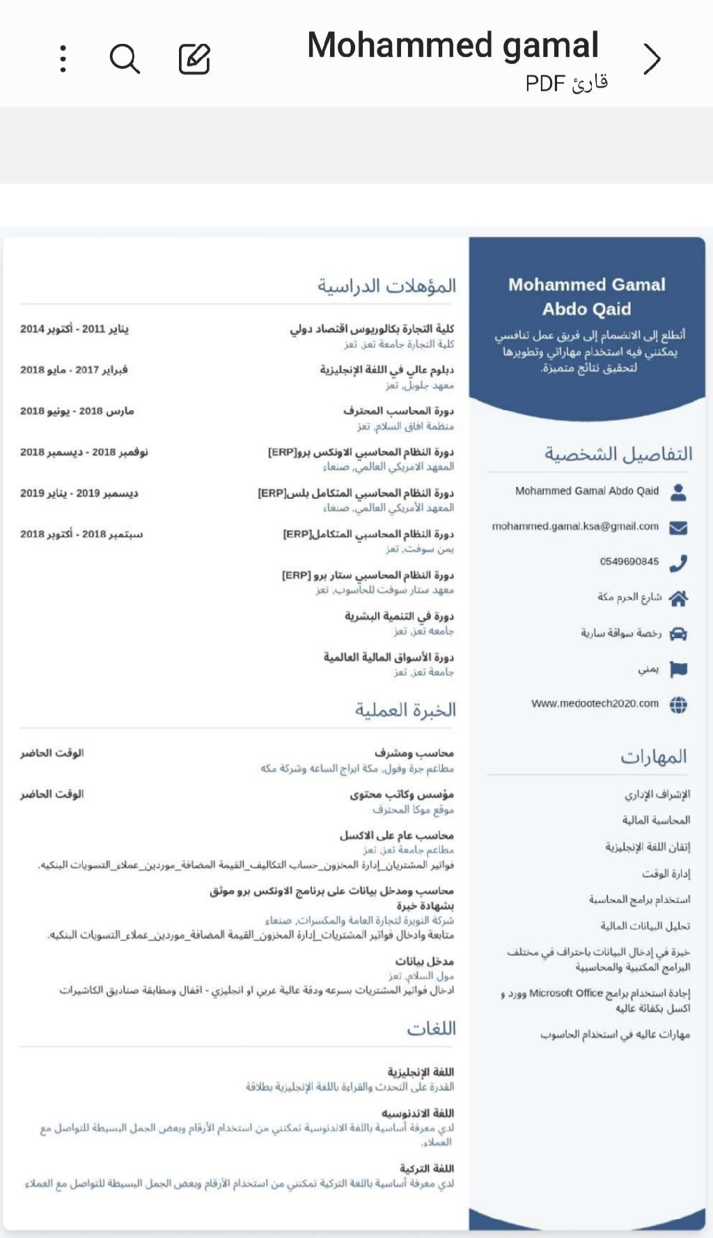 Accountant and administrative officer, fluent in English, with experience working on 4 ERP accounting systems, inventory management and control, journal entries, and financial reporting. Highly proficient in Microsoft Office (Word and Excel) Founder and content writer, specialized in SEO for both an Arabic and a foreign website. I also hold a valid driving license