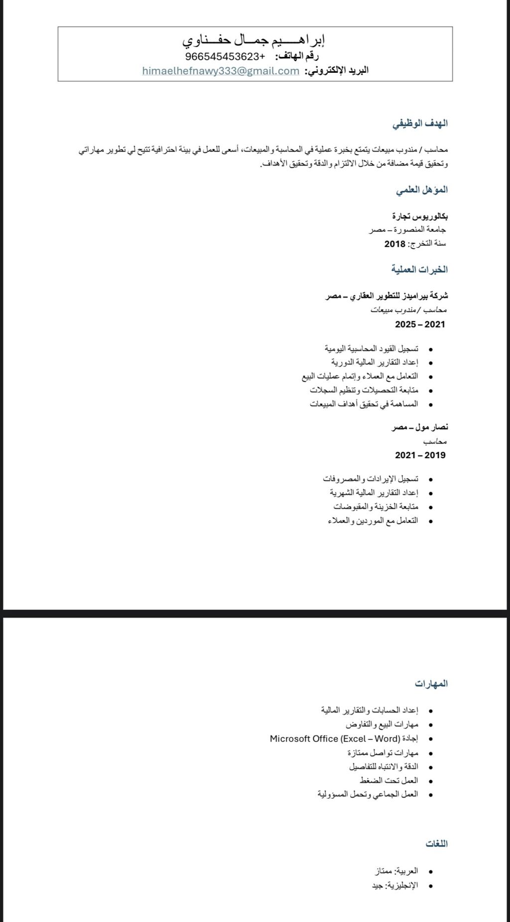 محاسب خبرة خمس سنوات في مجال شركات المقاولات ومجال المبيعات ابحث عن عمل ولدي اقامة سارية ورخصة سارية وجاهز للمقابله والدوام فورا