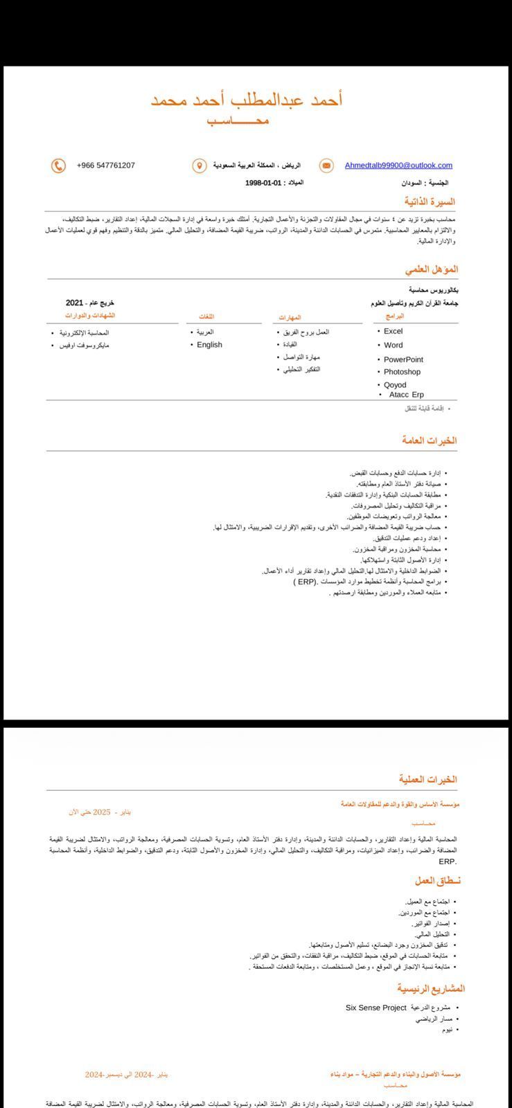 باحث عن عمل خبرة عملية 4 سنوات ملم ب الضريبة والزكاة وملم ب برامج ERP سوداني الجنسية