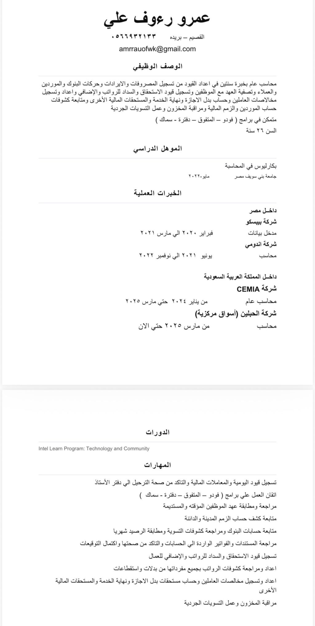 محاسب خبرة ثلاث سنوات السن 26 سنة موجود ببريده