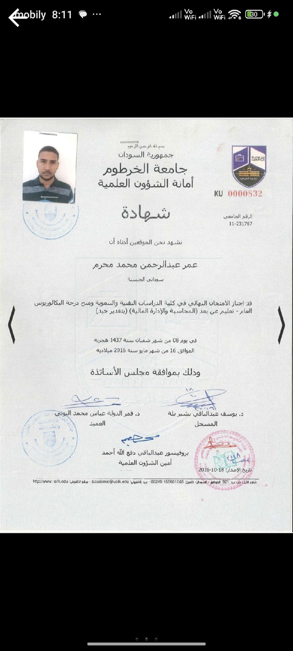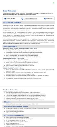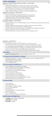 I am an accountant, bachelor's in financial accounting, Sudanese national, with 10 years of experience in financial reporting, preparing financial statements, journal entries, accounts receivable, accounts payable, tax report, Odoo ERP, SAP, Zoho, Tally and doso, I have valid transferable Iqama