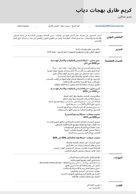 أمين مستودع محاسب موقع خبرة 5 سنوات في المقاولات العامة مدخل بيانات حاصل على بكالوريوس نظم معلومات اداريه