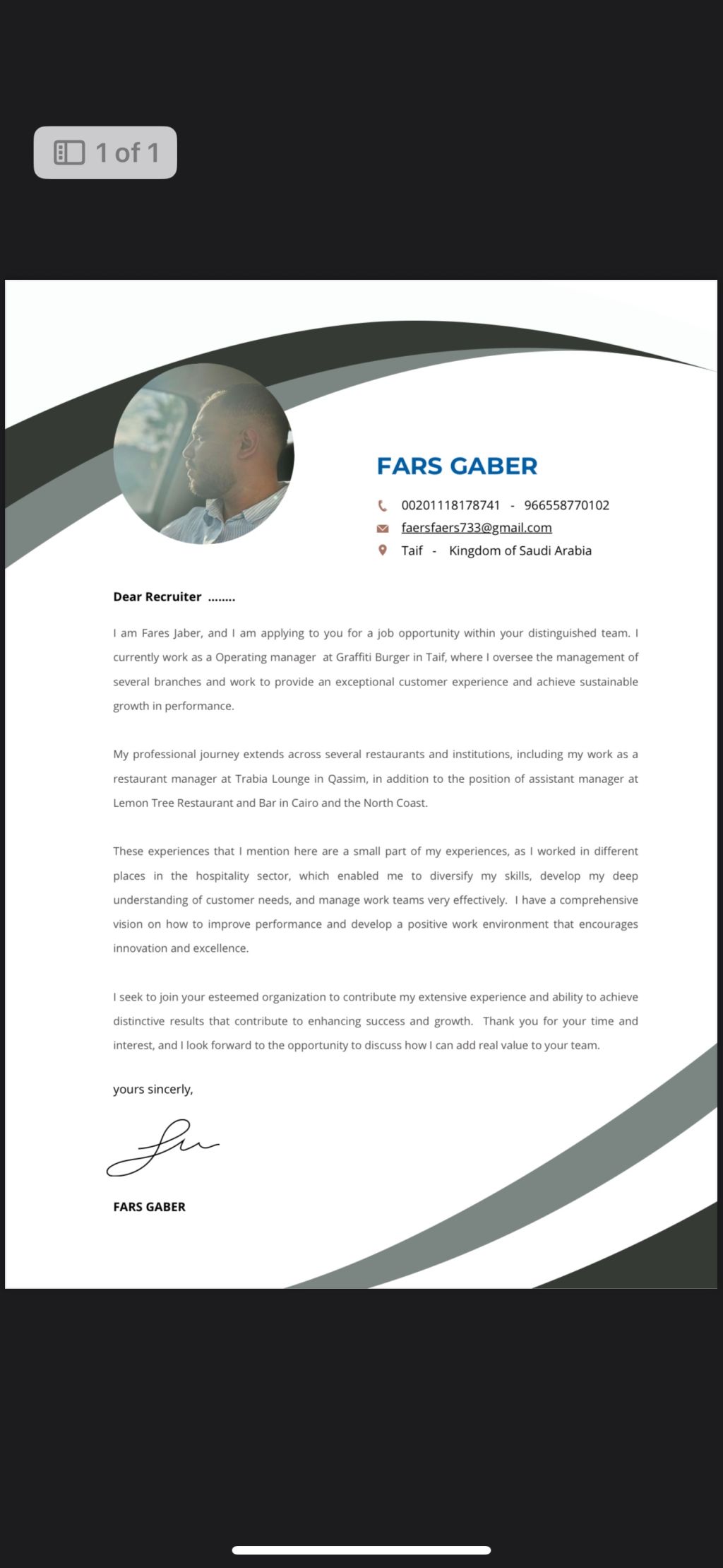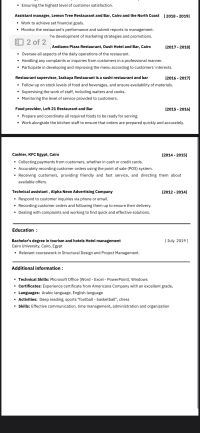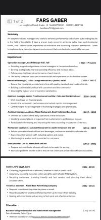 مدير تشغيل مطاعم بكالوريوس سياحة وفنادق ادارة فنادق خبرة 12 سنة في مجال المطعم 6 سنوات في السعودية