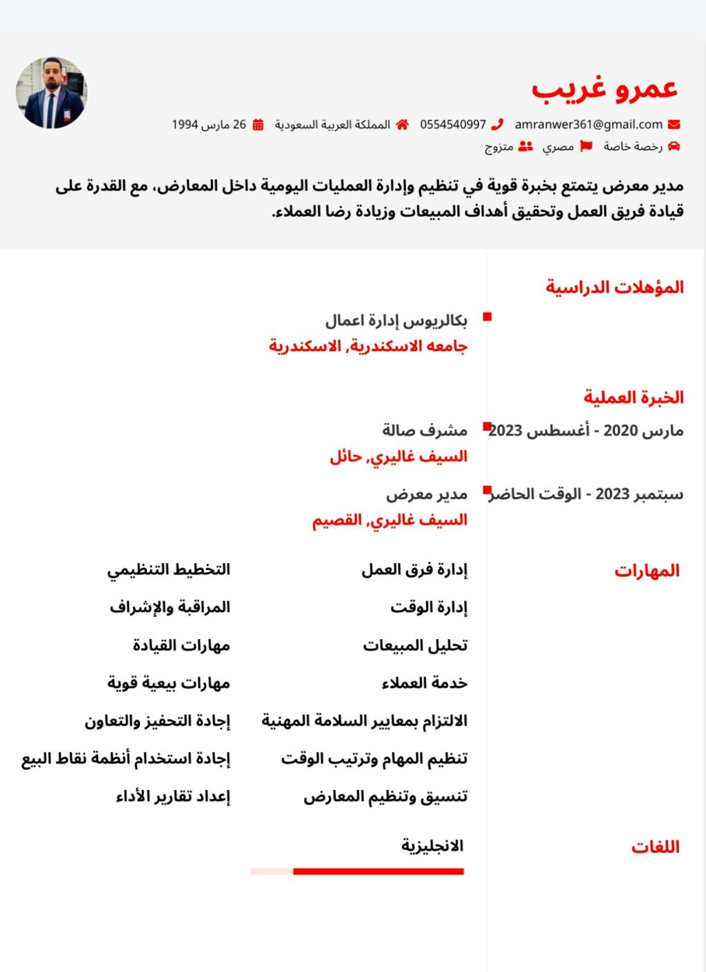 مصري الجنسية 31 عام اعمل حاليا مدير فرع ومشرف صالة وعملت سابقا 5 سنوات لدي شركة السيف غاليري ابحث عن فرصة عمل