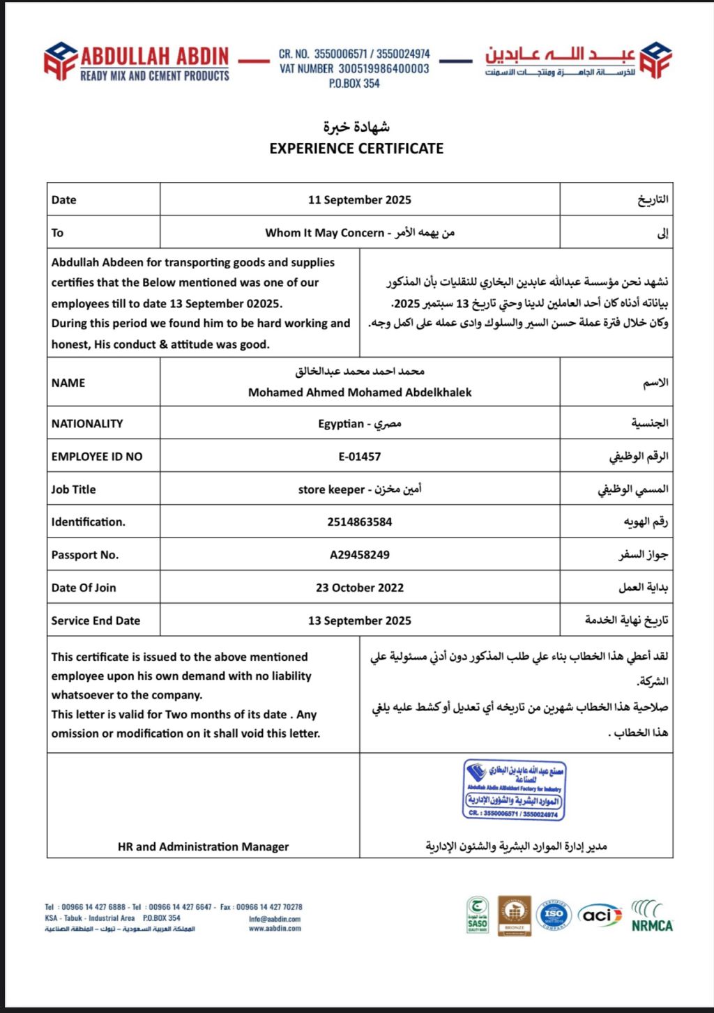 ابحث عن عمل في شركات الخرسانة أمين مستودع أو مدخل بيانات أو في مجال المبيعات