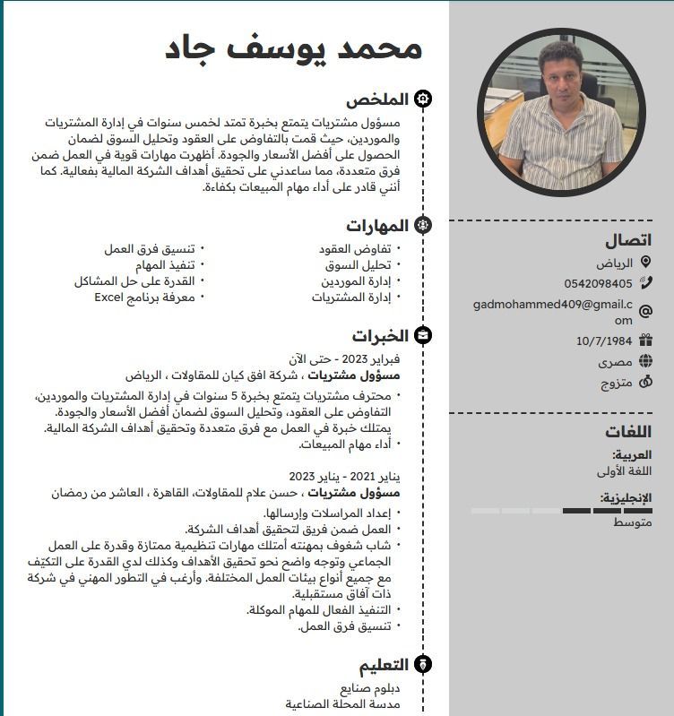 أنا مسؤول مشتريات خبرة أكثر من خمس سنوات قاعدة عملاء كبيرة وقائمه بأغلب الأسعار السوقية بمجال المقاولات وأعمال التشطيب وأغلب معروض السوق من منتجات