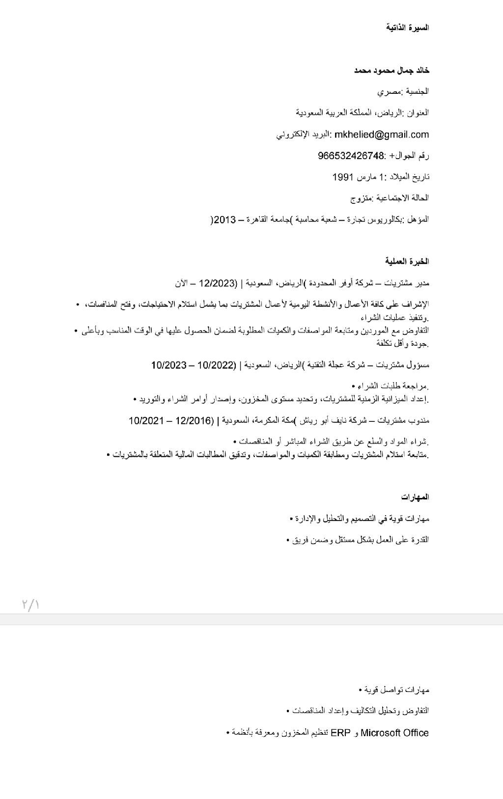 مدير مشتريات يبحث عن فرصة مناسبة بخبرة تتجاوز 8 سنوات في مجال المقاولات أتمتع بخبرة قوية في إدارة المشتريات وتحليل التكاليف والتفاوض مع الموردين وتنظيم المخزون. حاصل على بكالوريوس تجارة - محاسبة (جامعة القاهرة) وأتقن العمل على برامج Microsoft Office وAutoCAD وSolidWorks. باحث عن فرصة عمل في شركة تقدر الكفاءات