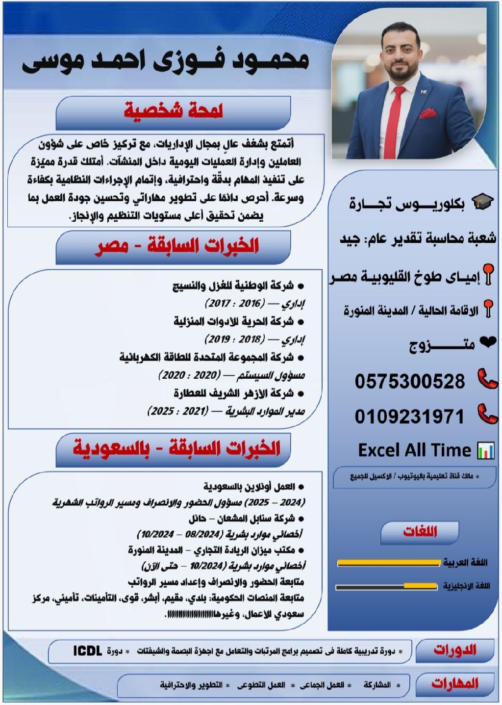 أخصائي موارد بشرية واداري يبحث عن فرصة عمل مناسبة