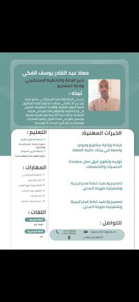 خبير الإدارة والتخطيط الاستراتيجي أتمتع بخبرة تزيد عن 30 عاما في مجالات التخطيط وإدارة المشاريع وتنمية الموارد البشرية والقيادة التنظيمية متمرس في إدارة الازمات والتفاوض والتخطيط في البيئات المعقدة امتلك خبرة أكاديمية واستشارية مميزة مع سجل حافل في قيادة الفرق وتنفيذ الأهداف الاستشارية وتحقيق النجاحات المؤسسية