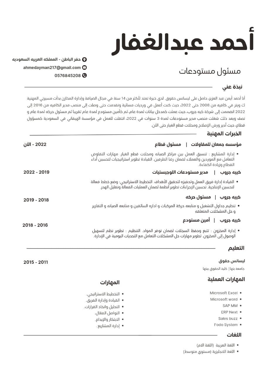 امتلك خبرة تتجاوز 10 سنوات في إدارة المستودعات والعمليات اللوجستية ومتابعة حركة المركبات عبر أنظمة GPS، مع تحقيق دقة مخزون وصلت الى 99.2% من خلال الجرد الدوري والرقابة الدقيقة. قمت بتحليل المسارات ومراقبة الأسطول وتقليل الهدر في الوقت والوقود، اضافة الى استخدام أنظمة ERP مثل SAP وERP Next لتحسين الأداء ورفع كفاءة التشغيل