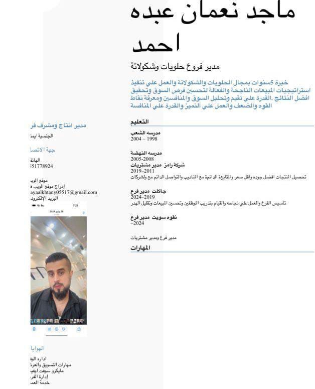 مدير مبيعات ومندوب لجميع الحلويات والمشتريات