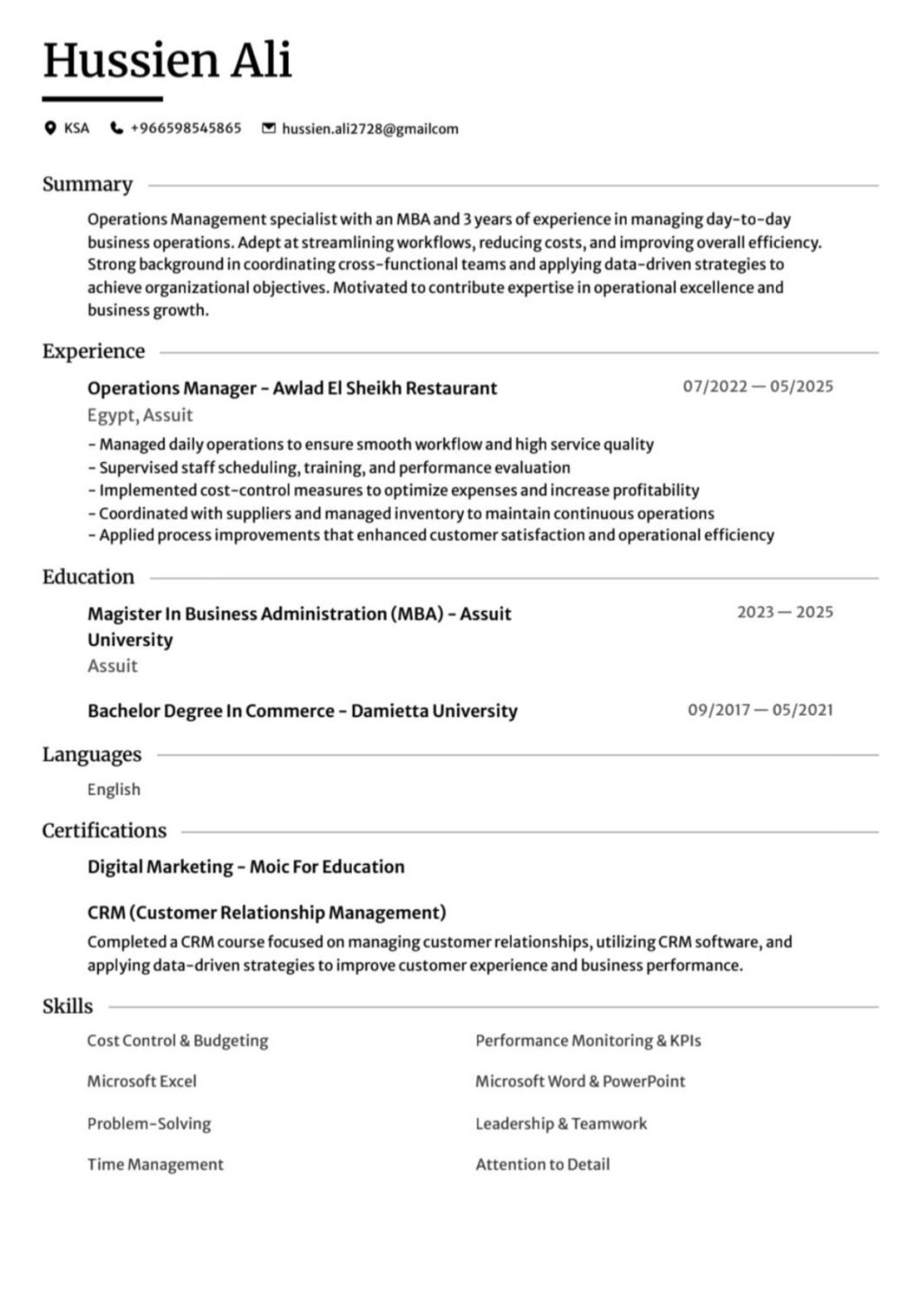 ابحث عن عمل في الادارة التشغيلية خبرة 3 سنوات، إدارة العمليات اليومية داخل بيئة العمل وإدارة تحسين سير العمل وتقليل التكاليف ورفع مستوى الكفاءة التشغيلية ولدي القدرة على تنسيق الفرق المختلفة والتعامل معها - 26 سنة - إقامة سارية - مقيم في الدمام