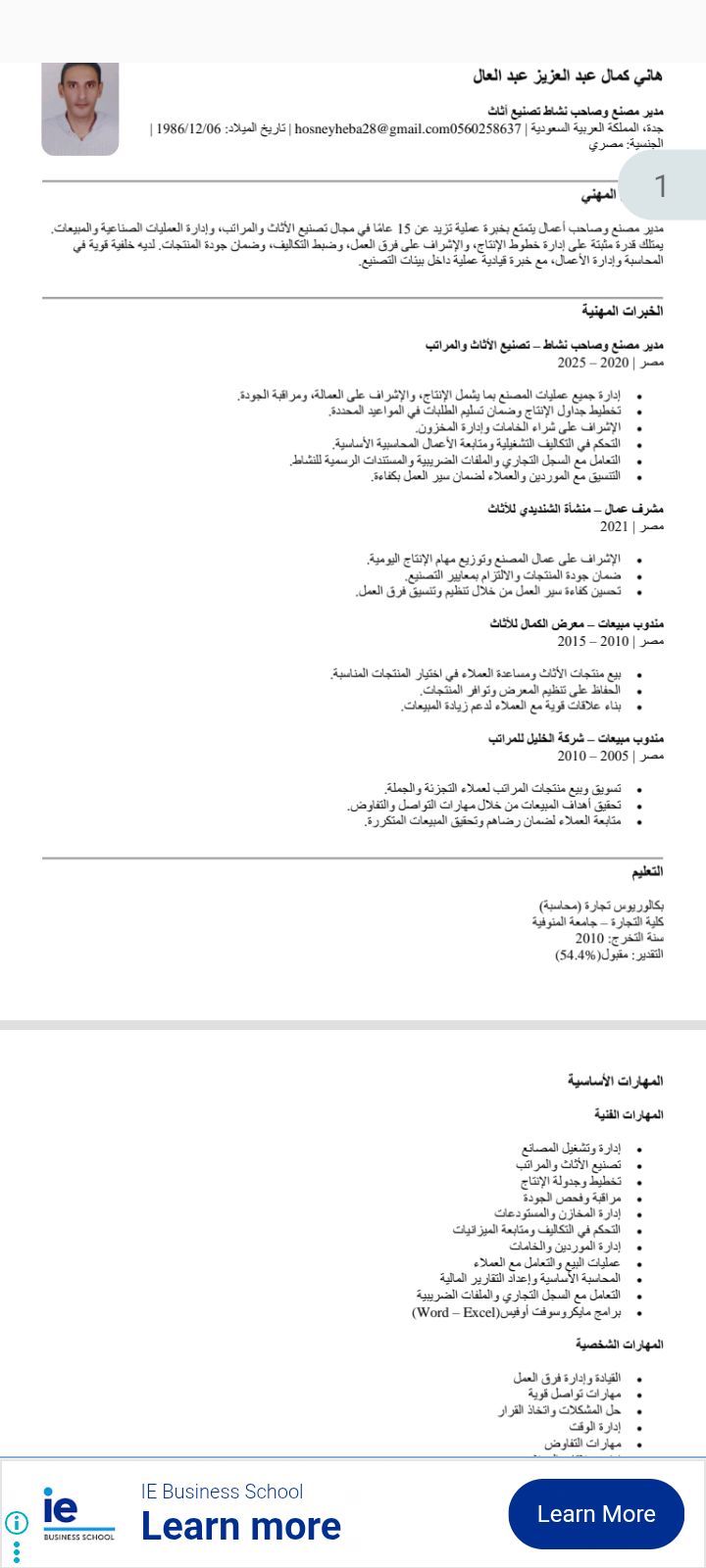 مدير مصنع أثاث ومراتب طبي خبرة في مجال الأثاث والمراتب الطبية والسوست اشتغلت في التصنيع والتعامل مع العملاء أطلب وظيفة للعمل في شركات الأثاث والمفروشات المنزلية وموجود CV