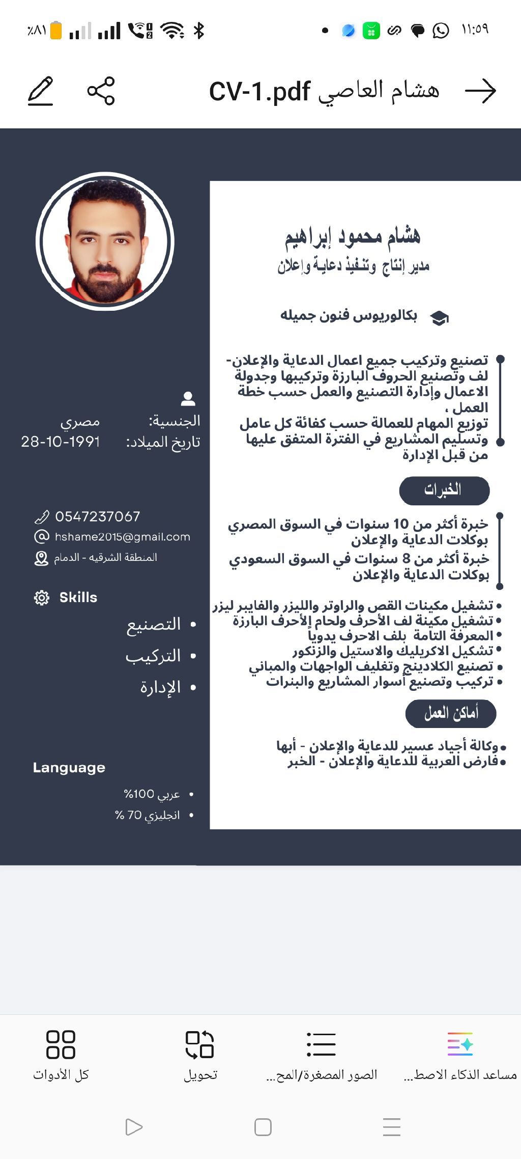 مدير انتاج لشركة دعاية واعلان علي دراية كاملة بشغل الدعاية خبر 9 سنوات بالسوق السعودي و11 سنة بالسوق المصري