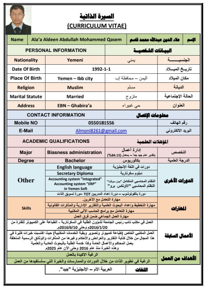 ابحث عن عمل تخصصي بكالوريوس إدارة أعمال والسيرة الذاتية مرفقة