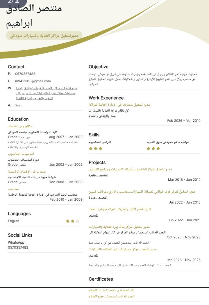 مدير تشغيل سوداني خبرة طويلة في إدارة مراكز العناية بالسيارات من التأسيس الى الادارة والمحاسبة والاشراف وتصوير العمل ونشره على السوشيال ميديا