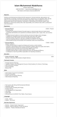 شاب مصري مقيم بالمملكة العربية السعودية حاصل على بكالوريوس ادارة أعمال (انجليزي) ابحث عن فرصة عمل مناسبة أستطيع من خلالها الاستفادة من خبرتي العملية وتطوير مهاراتي والمساهمة في تحقيق أهداف الشركة لدى خبرة 5 سنوات في مجال تخطيط الطلب (demand planner) داخل قطاع البيع بالتجزئة مع القدرة على تحليل البيانات ومتابعة المبيعات ابحث عن فرصة عمل في تخطيط الطلب / مشتريات / أعمال ادارية / مبيعات / لوجستيك / مساعد