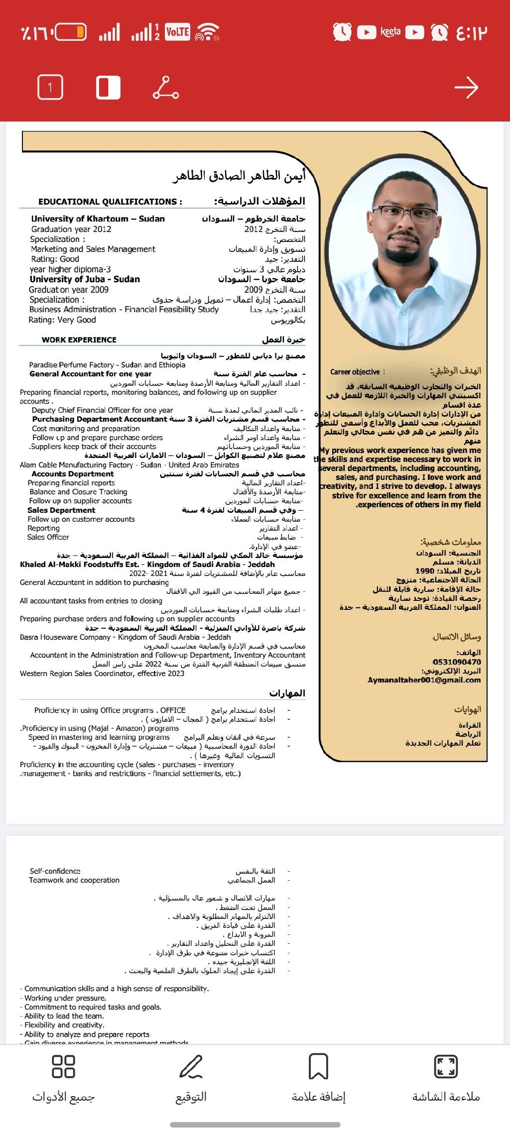 الخبرات والتجارب الوظيفية السابقة قد أكسبتني المهارات والخبرة الأزمة للعمل في عدة أقسام من الادارات إدارة الحسابات والمشتريات والمبيعات
