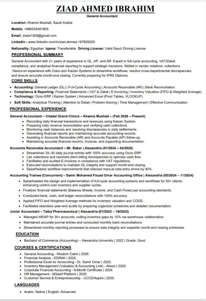 محاسب مصري خبرة سنتين ابحث عن وظيفة استقبال أو كاشير أو وظيفة مناسبة للمؤهل في خميس مشيط