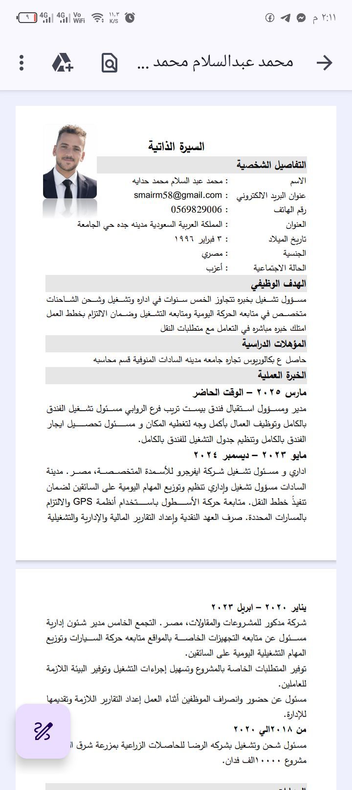 أنا محمد عبد السلام مصري الجنسية عندي 30 سنة ابحث عن أي وظيفة اداريه اقامة سارية