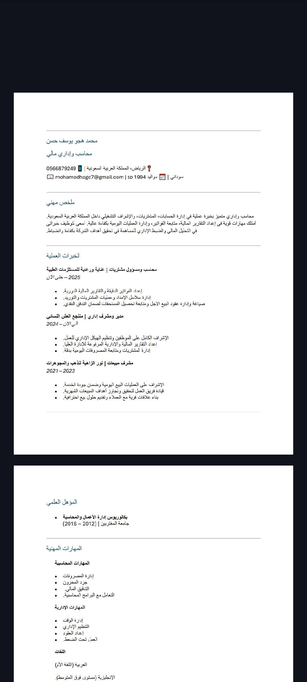 سوداني الجنسية / بكالوريوس ادارة الأعمال