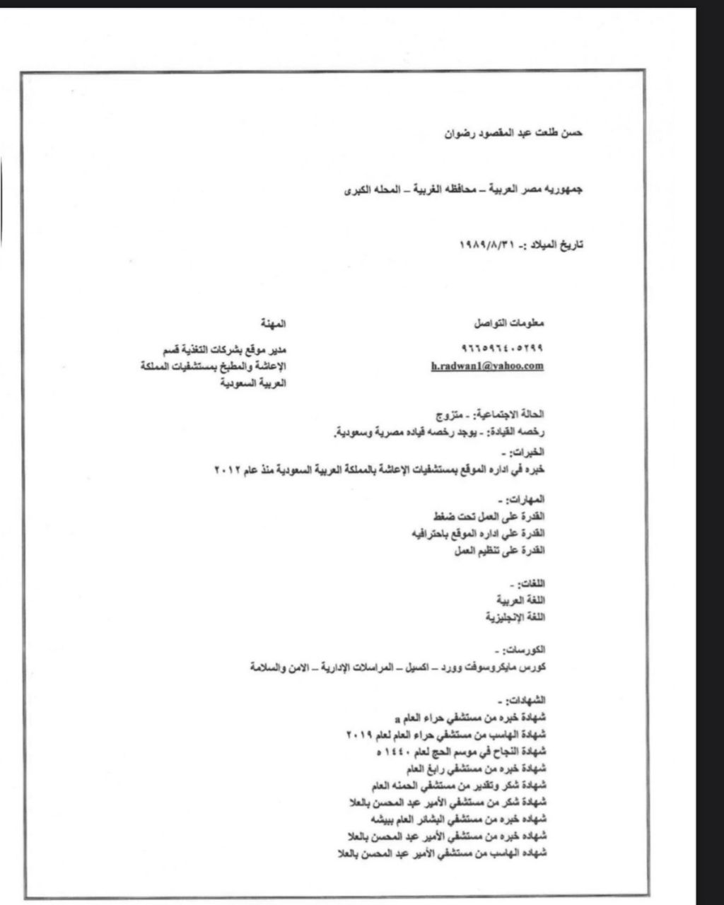 خبرة في مجال الاعاشة أكثر من 14 سنة بالقطاع الصحي والمستشفيات