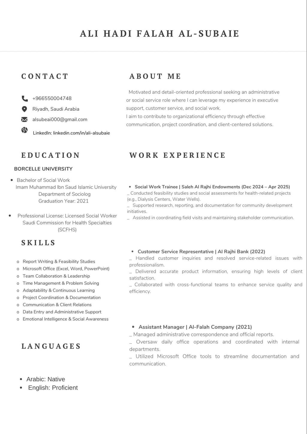 Seeking Work in Administration in Saudi Arabia