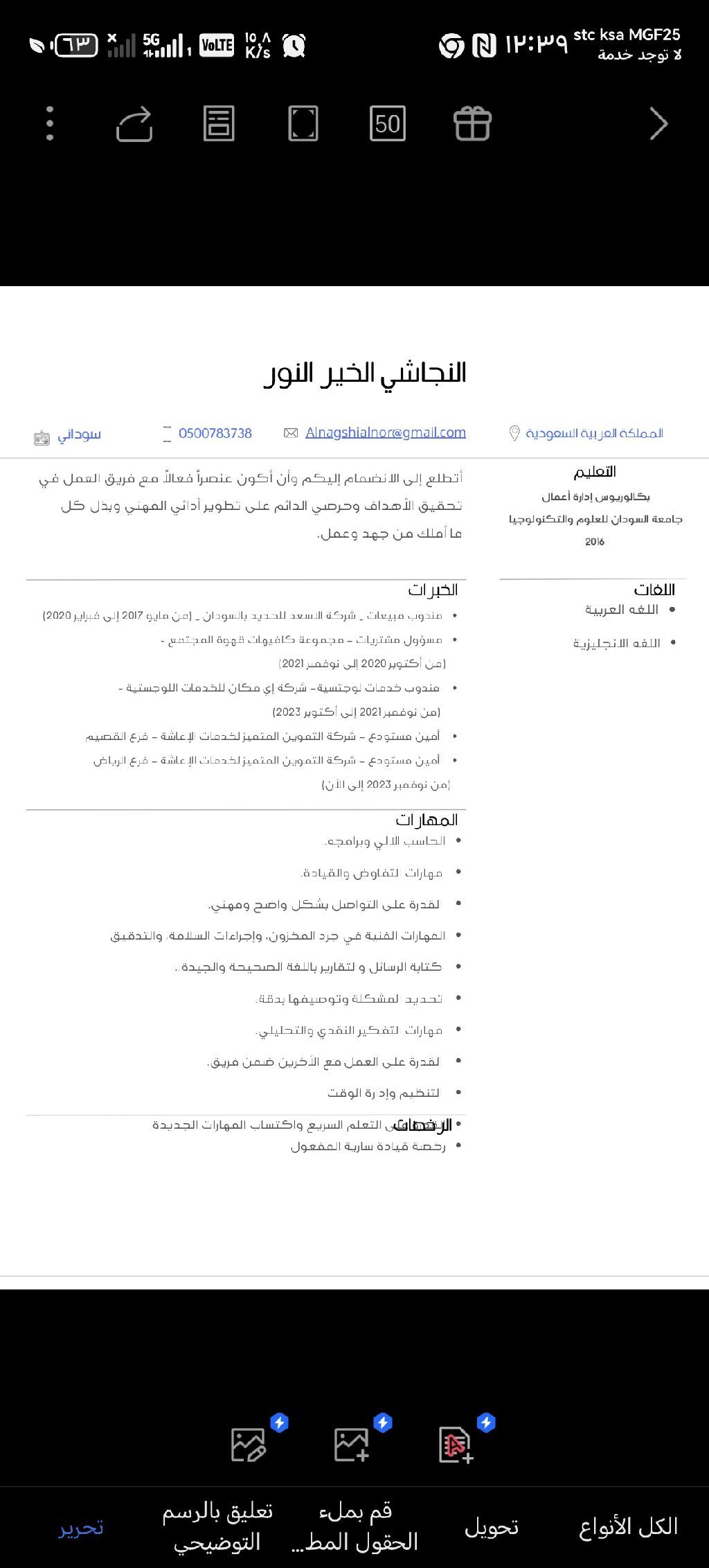 شاب سوداني ابحث عن فرصة عمل مناسبة، لدي استعداد كامل للعمل فورا امتلك التزاما وقدرة على التعلم السريع. متاح للعمل في المجالات التالية المبيعات المستودعات الخدمات اللوجستية أو أي وظائف تشغيلية أو ادارية مناسبة الخبرات خبرة سابقة في مجال المستودعات مجال الاعاشة أو المواد الغذائية وأيضا في مجال الخدمات اللوجستية التشغيلية) اجادة استخدام الحاسب الآلي وبرامجه والتعامل مع العملاء