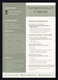 I worked in a Arabic restaurant for 2 years as a kitchen manager and before I worked as storekeeper for 1 year in the same restaurant. I am bangladeshi. call me
