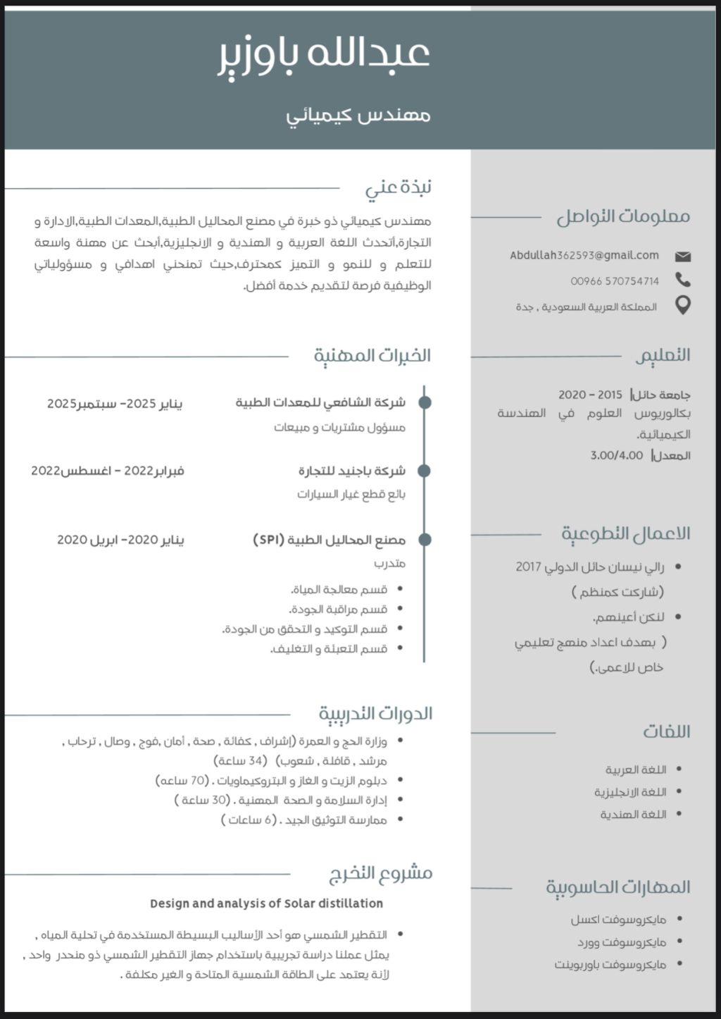 الخبرات خبرة في في مصنع المحاليل الطبية والمعدات الطبية والادارة والتجارة والجودة، أتحدث اللغة العربية والهندية والانجليزية. أجيد المهارات الحاسوبية للاتصال