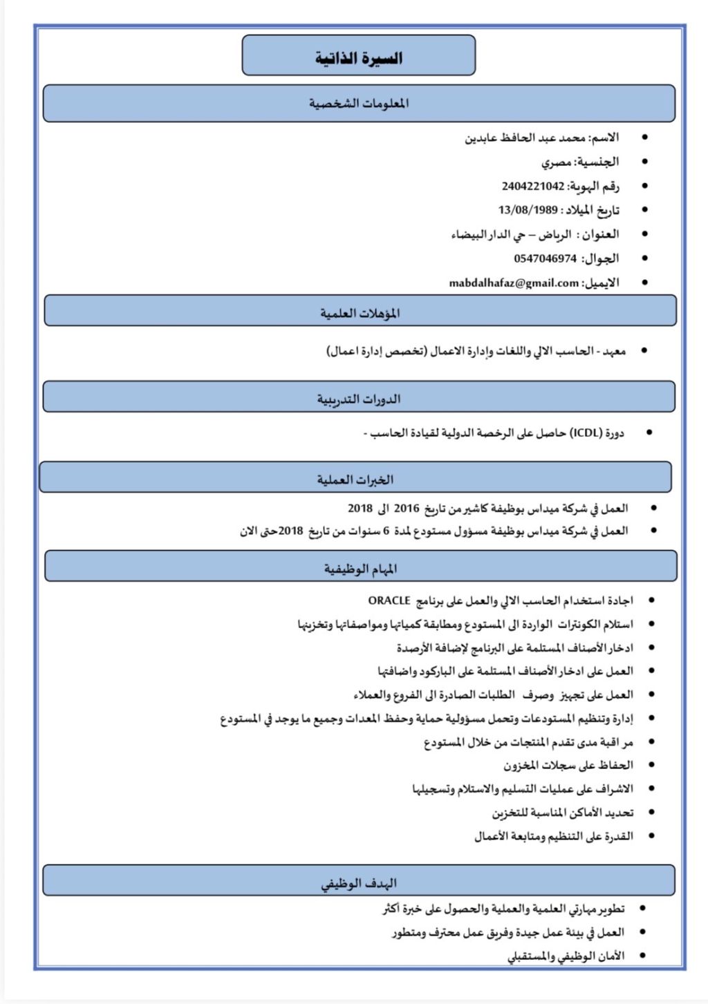 أمين مستودع ابحث عن عمل خبرة أكثر من 9 سنوات في مجال المقاولات والمشاريع والأثاث المنزلي والمكتبي