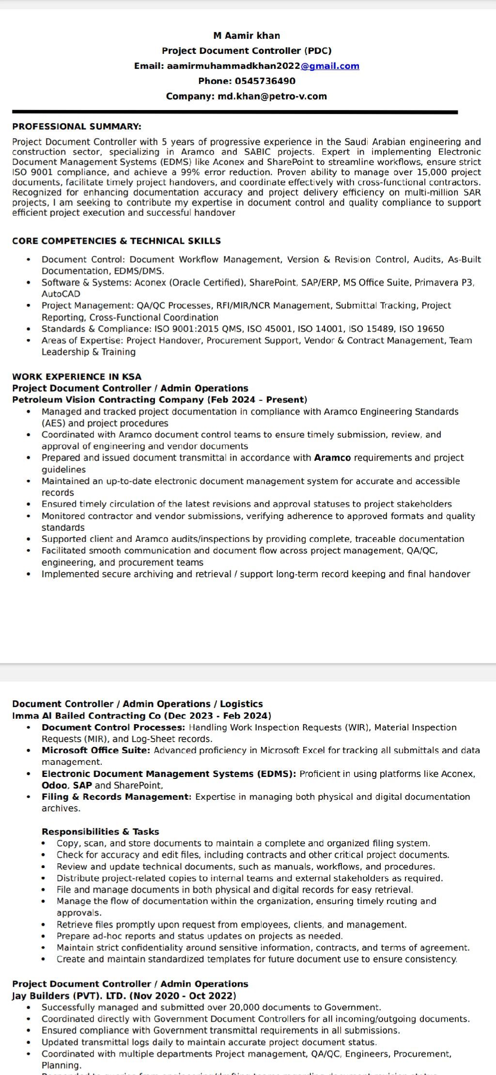 I am writing to apply for the Project Document Controller role. With over five years of experience specifically in the Saudi sector, I specialize in ensuring documentation compliance and efficiency for major clients like Aramco and SABIC. My expertise is directly relevant to your needs Aramco Project Compliance Hands - on experience managing document workflows in full com