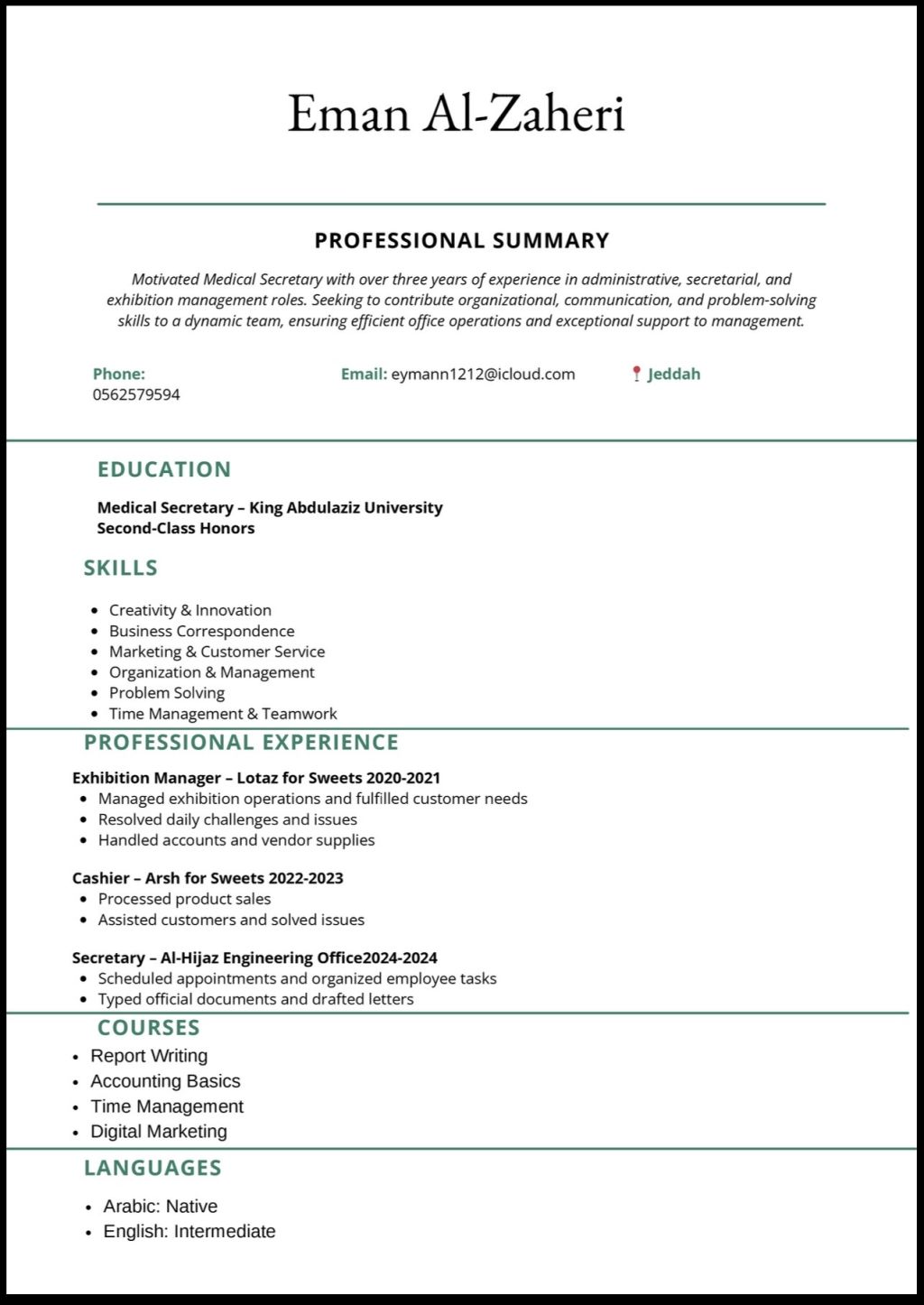 أنا شخص طموح وأسعى لتطوير نفسي باستمرار، حاصل على شهادة دبلوم، ولدي خبرة تمتد لثلاث سنوات في مجالات متعددة. امتلك مهارات في العمل ضمن فريق، وتحمل المسؤولية، والتعامل مع بيئات العمل المختلفة بكفاءة. ابحث حاليا عن فرصة عمل أستطيع من خلالها توظيف خبراتي وتطوير مهاراتي والمساهمة في تحقيق أهداف جهة العمل
