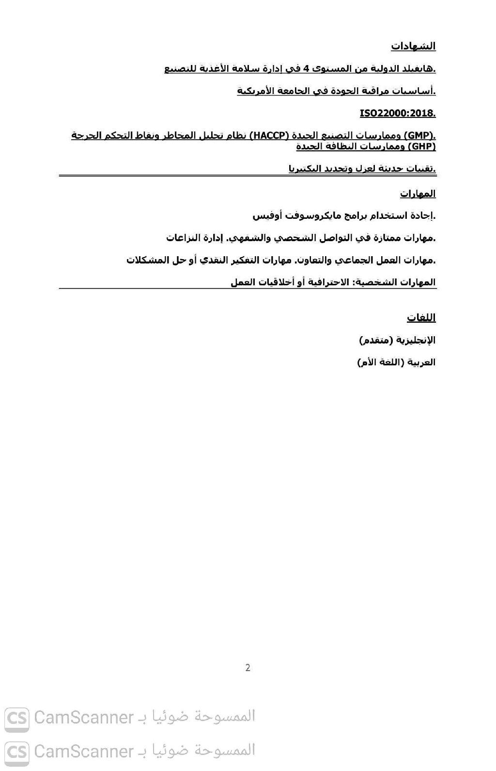 A food quality and safety engineer with practical experience in food factories in Egypt and Saudi Arabia. Proficient in implementing Highfield food safety systems, HACCP, ISO 22000, and GMP preparing quality records and reports inspecting raw materials and finished products monitoring critical control points mitigating risks and improving product quality. Holds a Bachelor of biotechnology