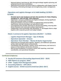 Operations and Logistics Manager with over 9 years of experience in e commerce, retail, logistics companies, and operations management. 4 years of experience in the Kingdom