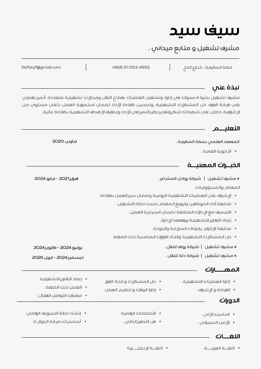 مشرف تشغيل ملم بجميع مهام التشغيل وابحث عن عمل