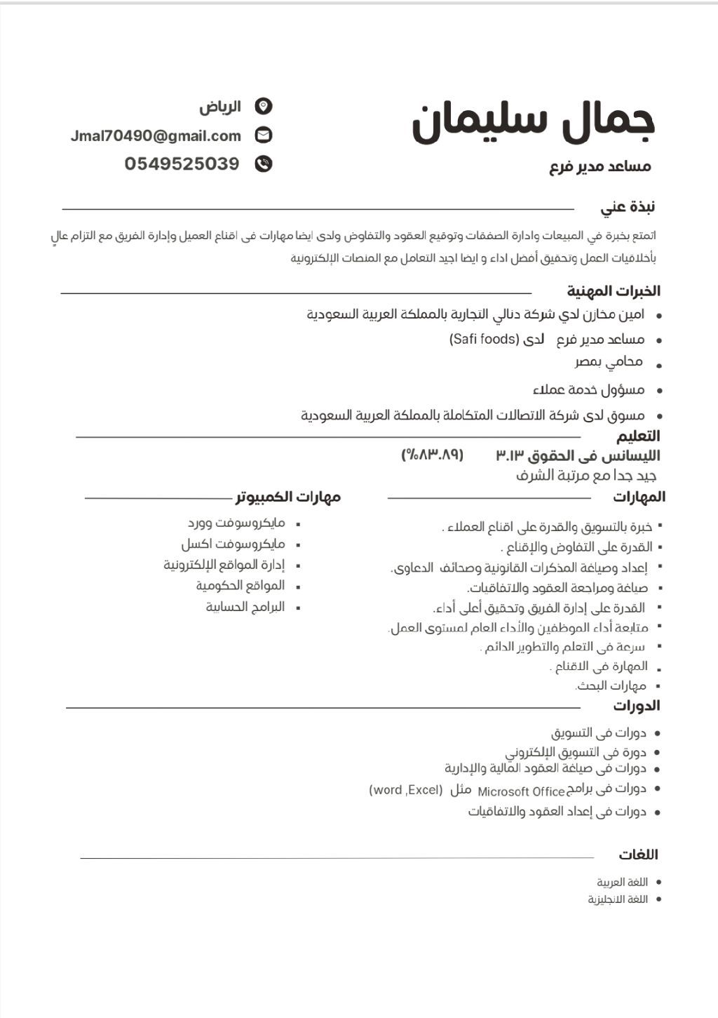 أنا شخص منظم وطموح امتلك مهارات قيادية وقدرة على العمل تحت الضغط، وأسعى دائما لتحقيق أفضل النتائج للفريق والعمل. أتميز بالقدرة على إدارة الوقت بكفاءة، وحل المشكلات بسرعة وفعالية، بالاضافة الى مهارات تواصل قوية تساعدني على التعامل مع الموظفين والعملاء بشكل احترافي. لدي روح المبادرة والقدرة على دعم مديري في تنظيم العمل، متابعة الأداء وتحسين جودة الخدمة لتحقيق أهداف الشركة. كما أحرص دائما على التطوير