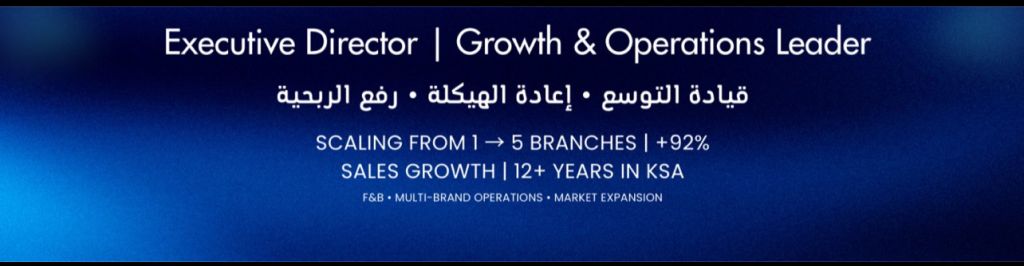 Executive Director COO Operations Strategist I help companies scale operations, increase profitability, and build high - performance teams. With 14 + years of executive leadership in Saudi Arabia, I specialize in operational transformation, multi - branch expansion, and KPI - driven growth Proven ability to turn complex operations into profitable, scalable businesses