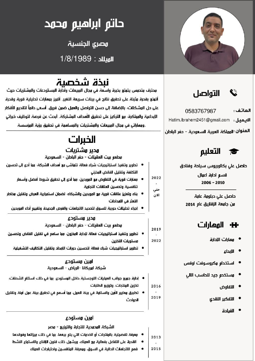 مدير مشتريات مطاعم وخبرة أيضا بمستودعات المطاعم وتأسيسها