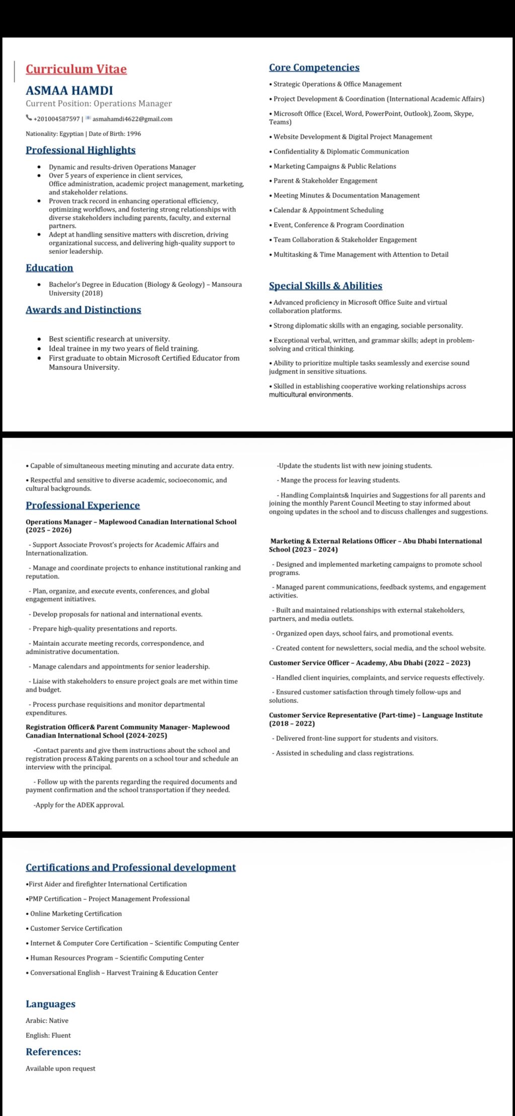 Egyptian, 29 years old, bachelor's degree in science and education, English, and Microsoft Office is excellent, and I was working as an operations manager in an international school in one of the Gulf countries, and I am looking for an administrative job in a Saudi school, university or company, preferably in Medina