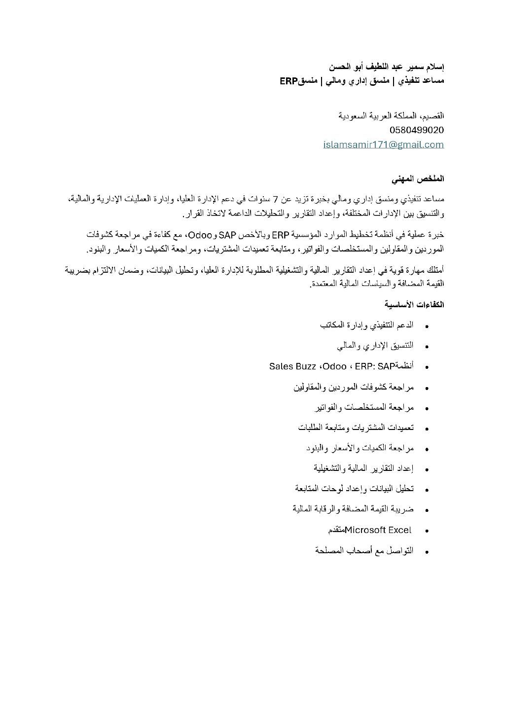 Accountant, Administrative and Financial Coordinator, and Executive Assistant with over 7 years of experience in supporting senior management, managing administrative and financial operations, preparing operational and financial reports, and reviewing contracts, supplier statements, contractor statements, progress claims, and invoice. I have practical experience with ERP systems
