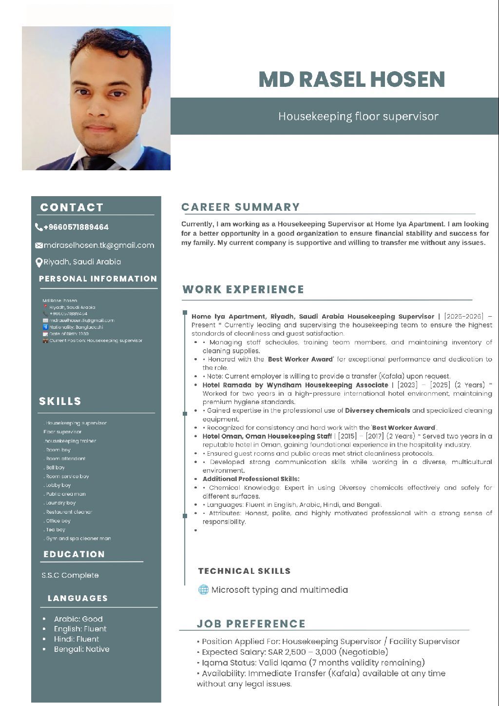 I want to Housekeeping supervisor job please can possible bring anyone hotel job