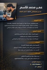 مصور جوال محترف يبحث عن فرصة عمل أنا عمر محمد قاسم مصور جوال متخصص في تصوير المنتجات باحتراف تغطية المناسبات والحفلات تصوير بسطات ومشاريع صغيرة تعديل الصور باضاءة طبيعية ولمسات احترافية أقدم تصوير جذاب يساعد مشروعك يطلع بأفضل شكل في السوشيال ميديا أهتم بالتفاصيل والجودة والتسليم السريع. متواجد في ينبع للتواصل