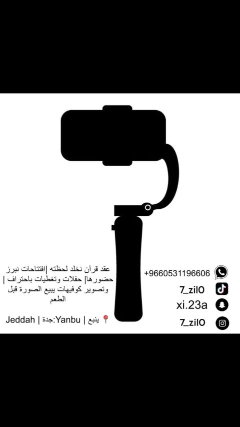 مصور جوال محترف يبحث عن فرصة عمل أنا عمر محمد قاسم مصور جوال متخصص في تصوير المنتجات باحتراف تغطية المناسبات والحفلات تصوير بسطات ومشاريع صغيرة تعديل الصور باضاءة طبيعية ولمسات احترافية أقدم تصوير جذاب يساعد مشروعك يطلع بأفضل شكل في السوشيال ميديا أهتم بالتفاصيل والجودة والتسليم السريع. متواجد في ينبع للتواصل
