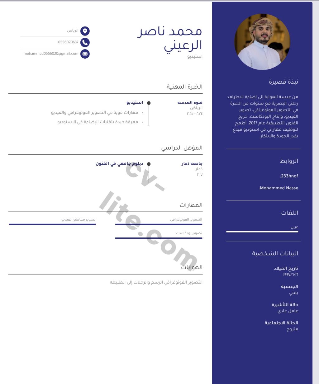 مصور محترف خبرة أكثر من 5 سنوات عملت من قبل في شركة انتاج الدور الوظيفي مصور مساعد اضاءة ابحث عن فرصة عمل