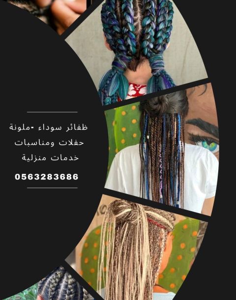 ظفائر شعر بجميع الالوان والأحجام خدمات منزلية + استعداد تام أجميع الحفلات والمناسبات