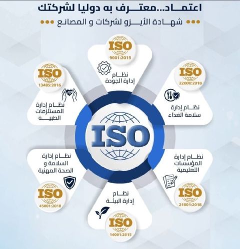 أصحاب الشركات والمؤسسات والمصانع أيا كان حجم أعمالك التجارية فإن استخدام معايير الأيزو المختلفه سوف يساعد على رفع جودة تلك الأعمال. نحن بأتم استعداد نقوم بأعمال المنح والاصدار لشهادات الأيزو. نظم إدارة الجودة أيزو 9001:2015 ISO نظم إدارة البيئة أيزو 14001:2015 ISO نظم إدارة سلامة الغذاء أيزو 22000:2005 ISO نظم إدارة السلامة والصحة المهنية أيزو 45001:2018 ISO لا تتردد بالاتصا