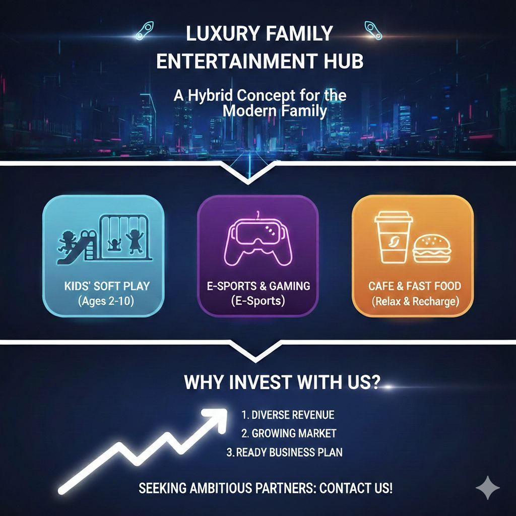 فرصة استثمارية "قوية" في قطاع الترفيه العائلي فكرة مشروع مدروسة صح، وتستهدف "العائلة السعودية" في أهم احتياجاتها. الفكرة عبارة عن مركز ترفيهي متكامل يجمع الكل في مكان واحد منطقة ألعاب اطفال على شان الصغار يفرغون طاقتهم بأمان) قسم جيمنج احترافي للمراهقين والشباب اللي يدورون أل PC وال PS5) مقهى ووجبات سريعة روقان للأهالي ووجبات خفيفة للكل) لتفاصيل أكثر أتواصل